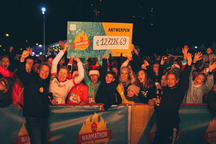 10 014 deelnemers Warmathon Antwerpen lopen 127 226,69 euro bij elkaar